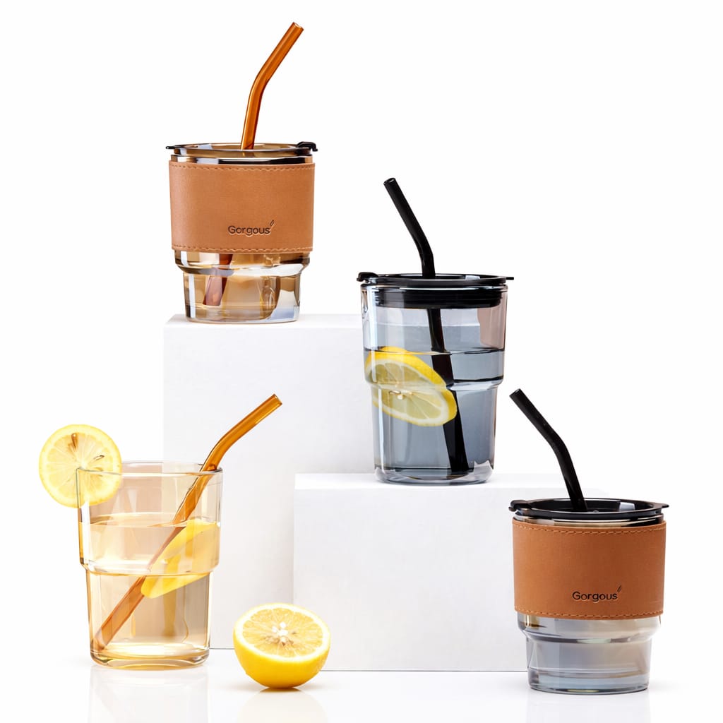 مج زجاج شفاف بالشاليموه للمشروبات الساخنه و البارده
